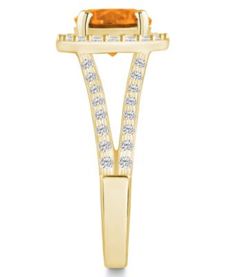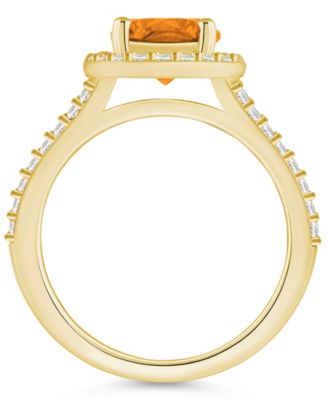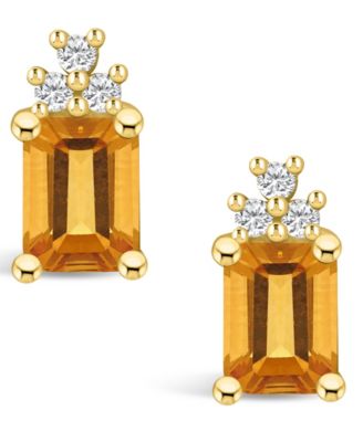 Citrine (3-1/5 ct. t.w.) and Diamond (1/5 ct. t.w.) Stud Earrings in 14K Yellow Gold