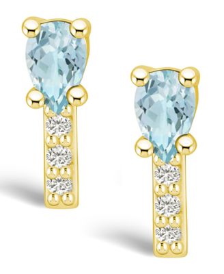 Aquamarine (3/4 ct. t.w.) and Diamond (1/8 ct. t.w.) Stud Earrings in 14K Yellow Gold