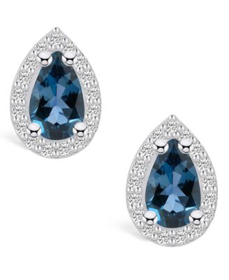 London Topaz (2 ct. t.w.) and Diamond (1/2 ct. t.w.) Halo Stud Earrings in 14K White Gold
