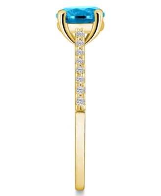 Blue Topaz (2-3/8 ct. t.w.) and Diamond (1/2 ct. t.w.) Halo Ring in 14K Yellow Gold