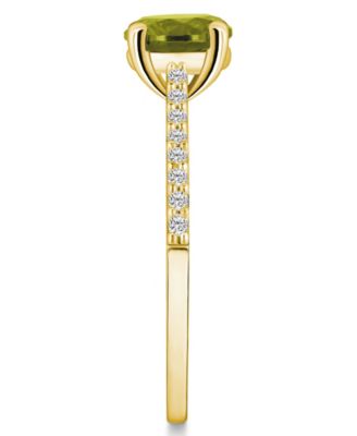 Peridot (1-1/2 ct. t.w.) and Diamond (1/6 ct. t.w.) Ring in 14K Yellow Gold