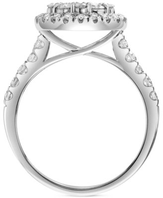 TruMiracle® Diamond Princess Shaped Halo Cluster Engagement Ring (1 ct. t.w.) in 10k White Gold