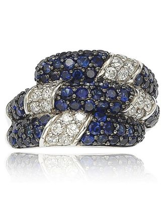 Suzy Levian Sterling Silver Sapphire & Created White Sapphire Swirling Ring