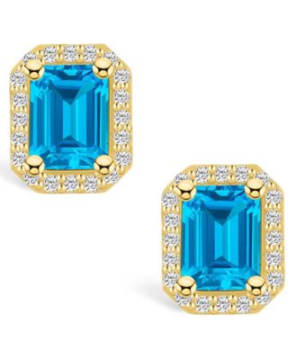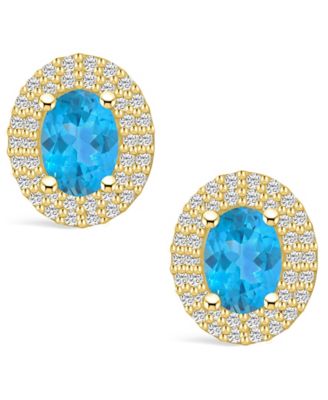 Topaz (2 ct. t.w.) and Diamond (1/2 ct. t.w.) Halo Stud Earrings in 14K Yellow Gold
