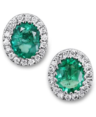 Emerald (5/8 ct. t.w.) & Diamond (1/10 ct. t.w.) Oval Halo Stud Earrings in 14k White Gold
