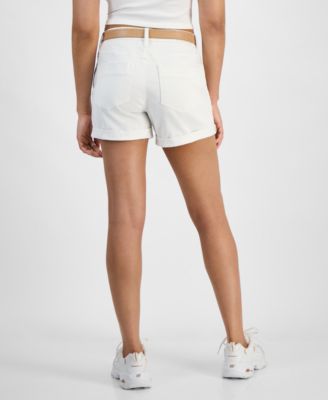 Juniors' Belted Ripped Cuffed Shorts