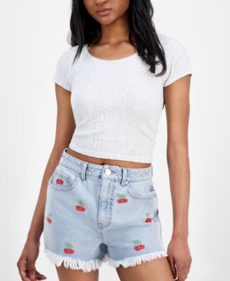 Juniors' Lisbon Pull-On Embroidered Shorts