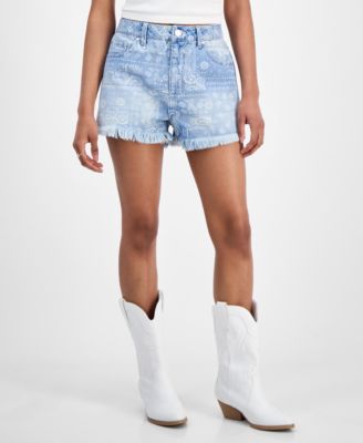 Juniors' Paisley-Print Festival Denim Shorts