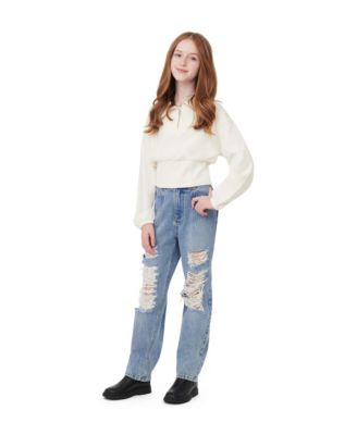 Big Girls Tapered Distressed Jeans