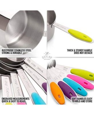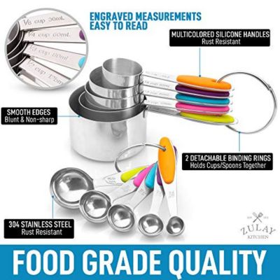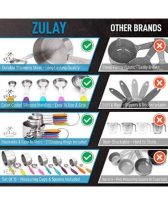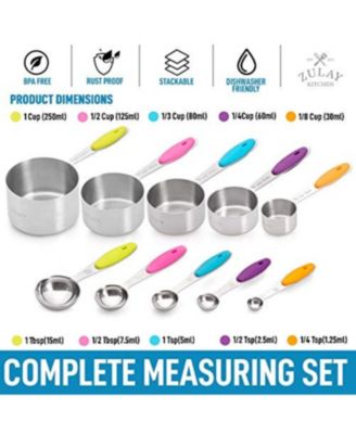 Set of 10 Stackable Stainless Steel Metal Measuring Cups and Spoons with Silicone Handles