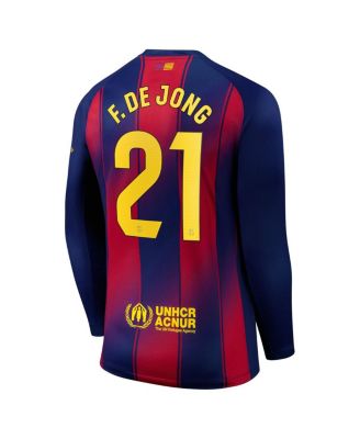 Men's Frenkie de Jong Navy Barcelona 2025/26 Home Replica Long Sleeve Jersey