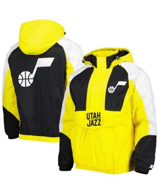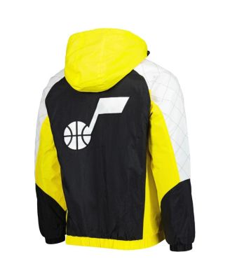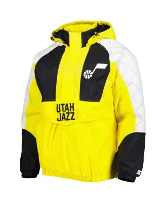 Men's Gold Utah Jazz Body Check Raglan Hoodie Half-Zip Jacket