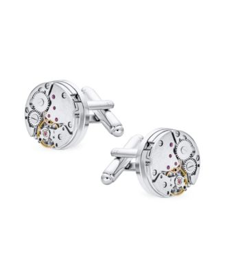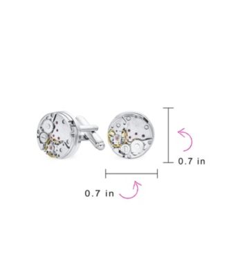 Mechanic Steam Moving Gears Wheel Solid Shirt Cufflinks Two Tone Stainless Steel Hinge Bullet Back