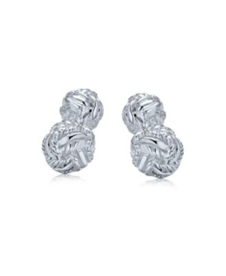 Solid Double Sided Twist Love Knot Woven Braided French Style Fixed Bar Backing Shirt Cufflinks Executive Groom Gift .925 Sterling Silver