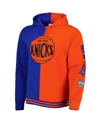 Men's Blue and Orange New York Knicks Big and Tall Hardwood Classics Split Pullover Hoodie