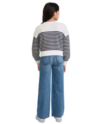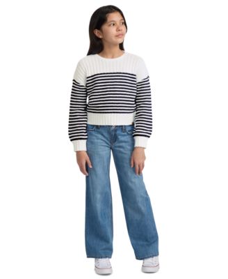 Big Girls Drawstring Rainbow Sweater & Wide-Leg Jeans