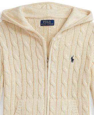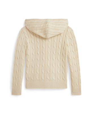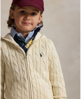 Toddler and Little Boys Cable Cotton Hooded Full-Zip Sweater