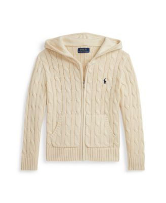 Big Boys Cable Cotton Hooded Full-Zip Sweater