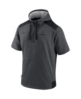 Men's Heathered Charcoal, Black Detroit Tigers Authentic Collection Dry Flux Performance Quarter-Zip Short Sleeve Hoodie