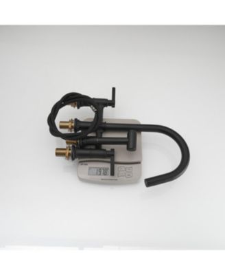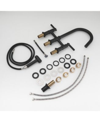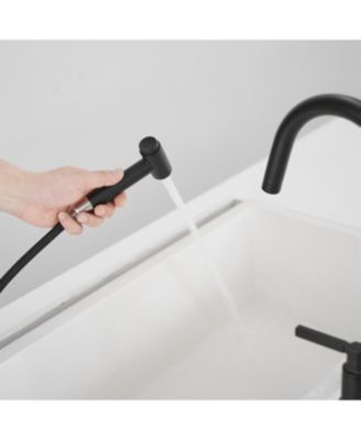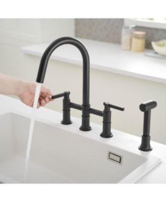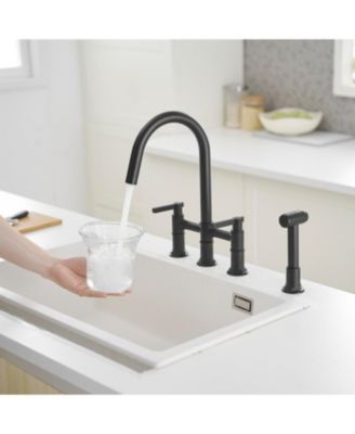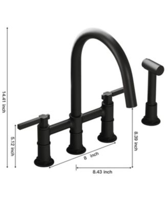 Modern Double Handle 4-Holes Deck Mount Bridge Kitchen Faucet with Side Sprayer Sink Faucet 360 Swivel Spout in Black