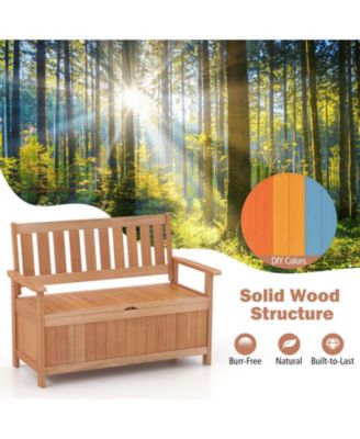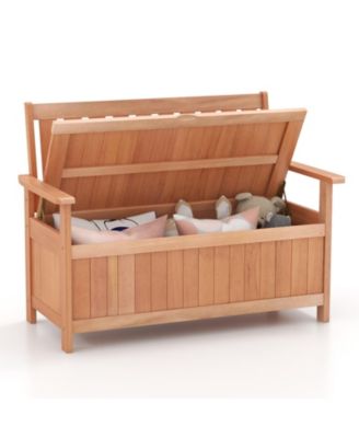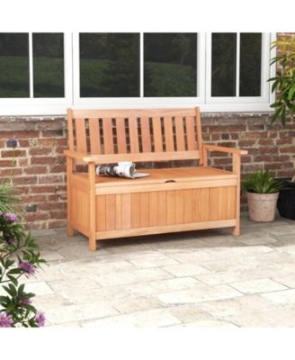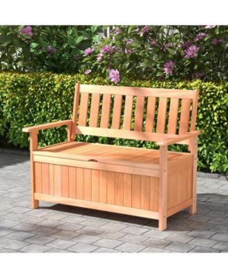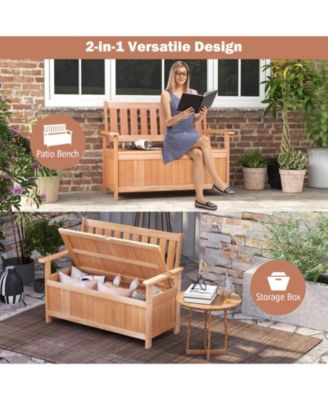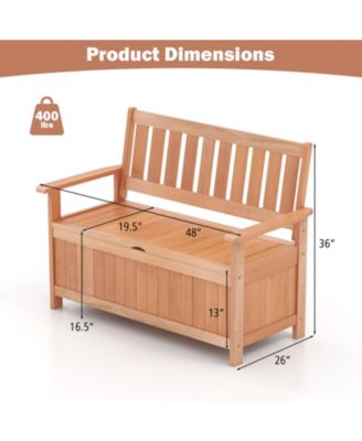 48 Inch Patio Wood Storage Bench with Slatted Backrest