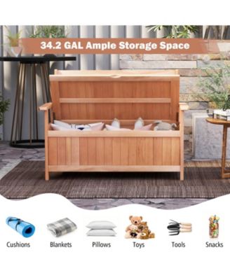 33 Gallon Wooden Storage Bench with Liner for Patio Garden Porch