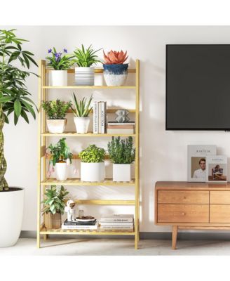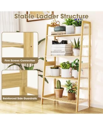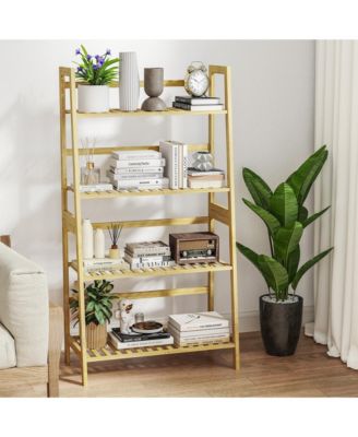 4-Tier Bamboo Ladder Shelf Multipurpose Bookcase, Plant Stand, or Storage Rack