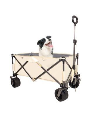 Heavy-Duty Folding Wagon – Utility Beach Cart with Big Wheels, Adjustable Handle & Drink Holders for Shopping, Camping