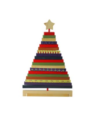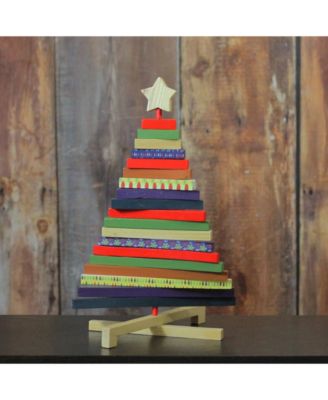 15.5" Adjustable Multi-Colored Wooden Decorative Christmas Tree Tabletop Decoration