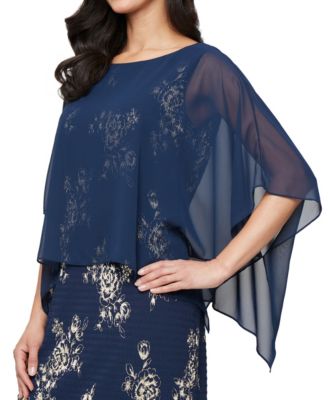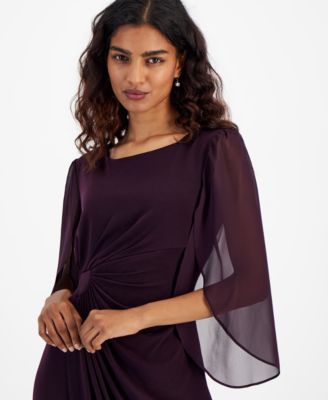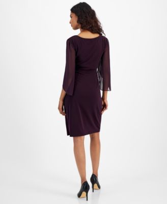 Petite Chiffon Cape-Sleeve Sheath Dress