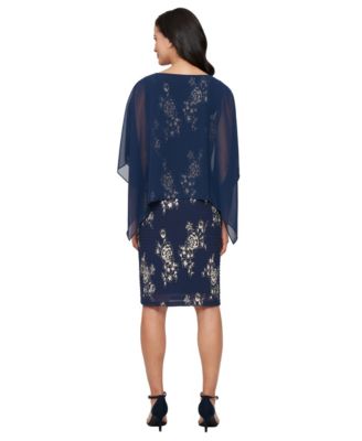 Petite Cape Overlay Round Neck Dress