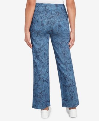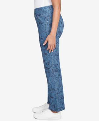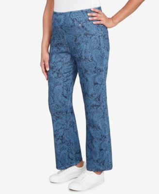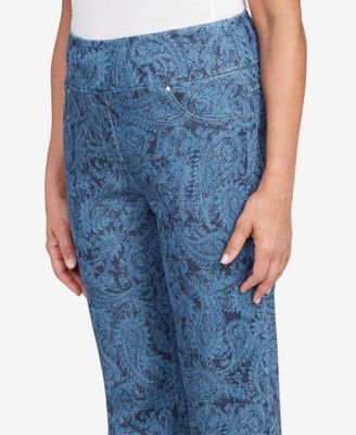 Petite Paisley Stretch Denim Pull On Ankle Jeans
