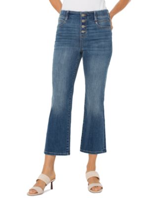 Petite Classics Button Hem Denim Capri Pants