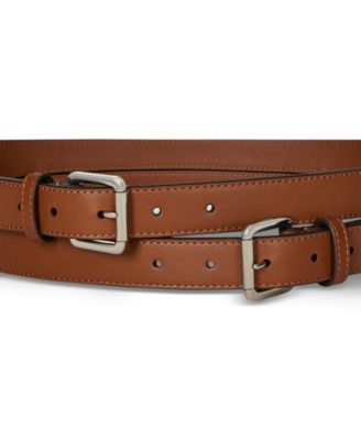 Double-Buckle Stacked Wide Leather Belt