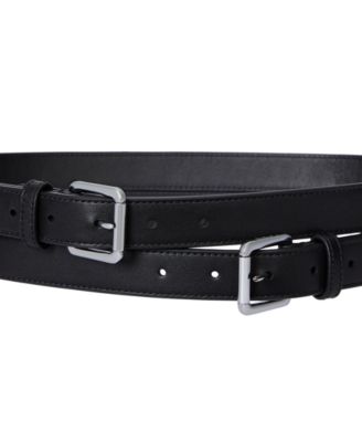 Leather Double-Buckle Stacked Belt