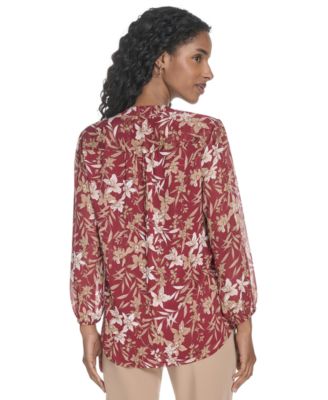 Women's Floral Pintucked Blouse